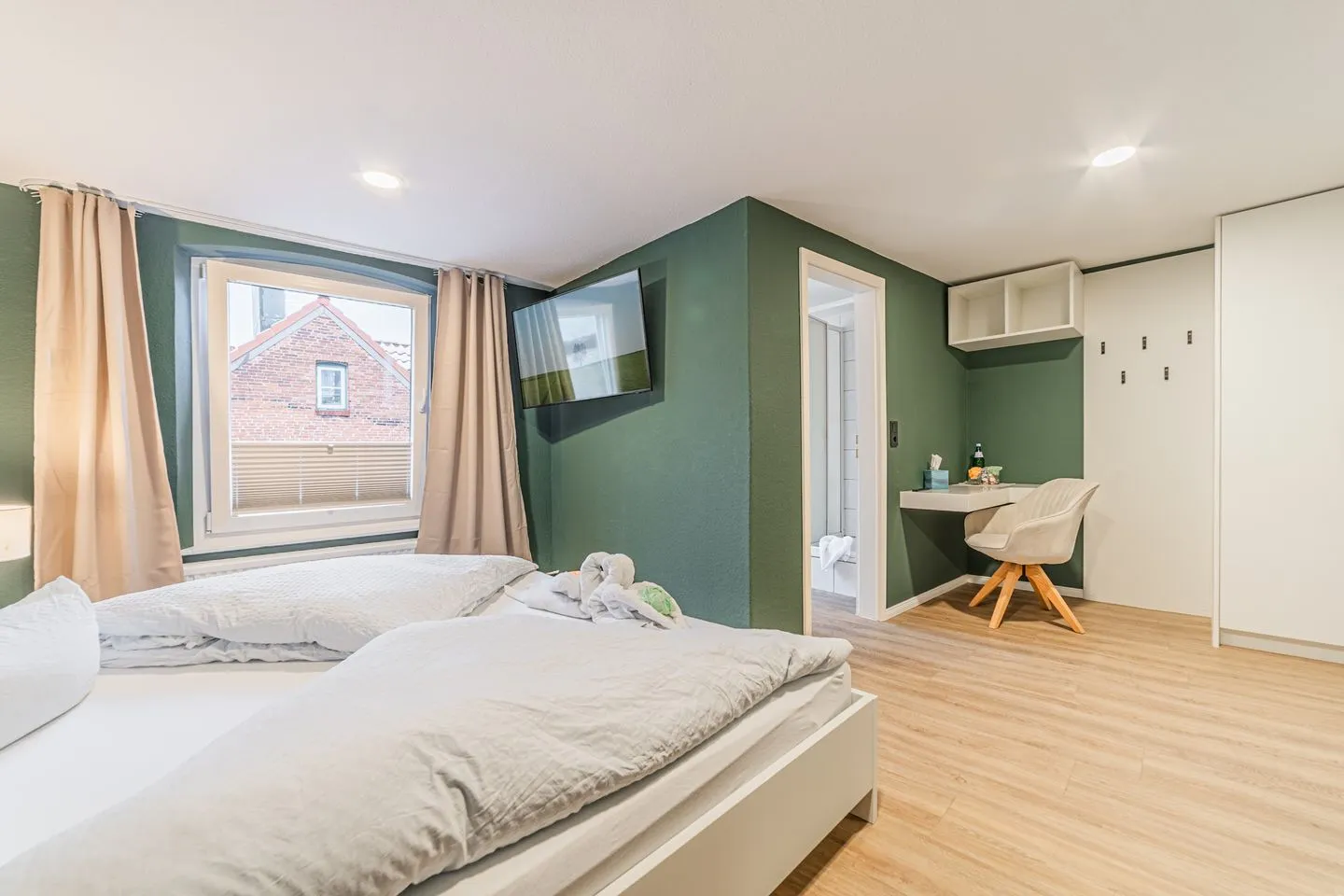 Ihr charmantes Refugium in Eckernförde: Das Hotel Seepferdchen – gemütliches Zimmer zum Hinterhof.