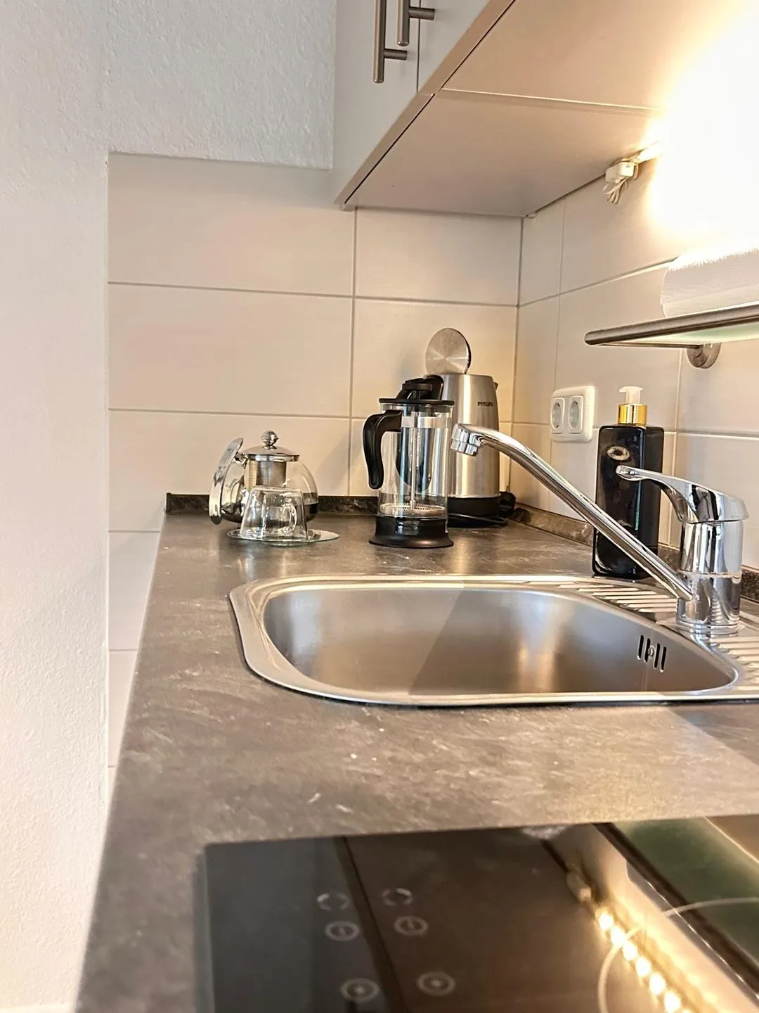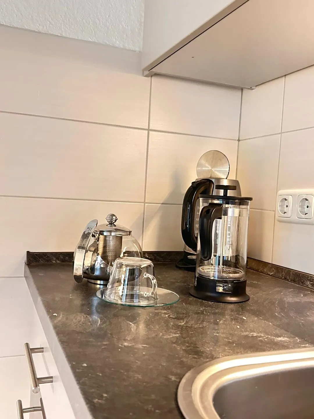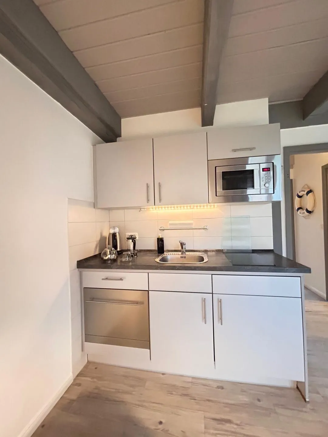 Die lichtdurchflutete Wohnung verfügt über ein geschmackvoll eingerichtetes Schlafzimmer oder Wohnbereich, der Ihnen den idealen Rückzugsort bietet, um nach einem aktiven Tag in der Natur zu entspannen. Die Küche, die elegant in das Wohnambiente eingebettet ist, ist mit modernen Annehmlichkeiten wie Cerankochfeld, Backofen, Kühlschrank, Mikrowelle, Geschirrspüler und weiteren Küchenutensilien ausgestattet. Hier können Sie ganz einfach kulinarische Genüsse zubereiten. Ein optionaler Brötchenservice kann Ihren Morgen noch genussvoller machen.